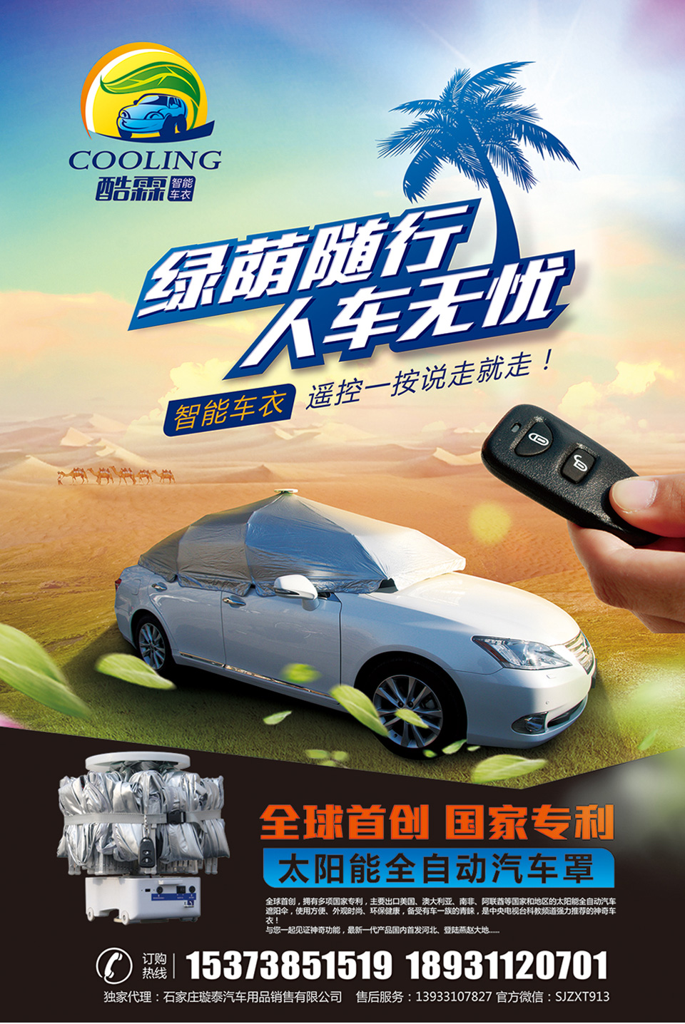 项目背景:酷霖太阳能全自动车衣产品为全球首创,国家专利产品;可酷热夏日爱车温度直降30-40℃。