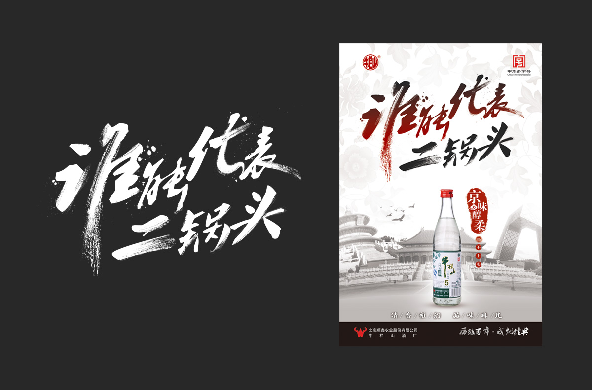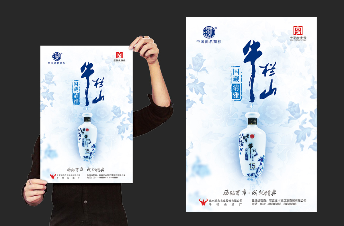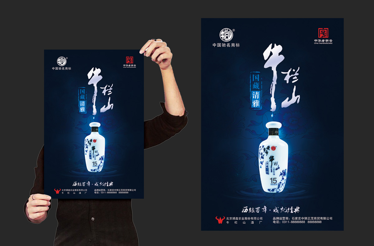 解决方案:牛栏山国藏清雅系列产品品牌形象海报,强化“清香雅韵 京味醇柔”产品核心特色体验;光瓶产品强化“谁能代表二锅头”--纯正京味牛栏山二锅头。